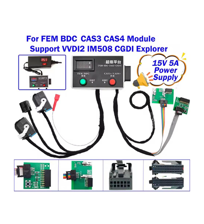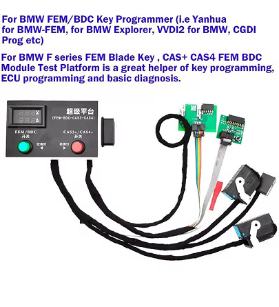 Diagnostic and programming tool for BMW immobilizer systems, supporting CAS3, CAS4, FEM, and BDC modules for key programming, coding, and security functions.