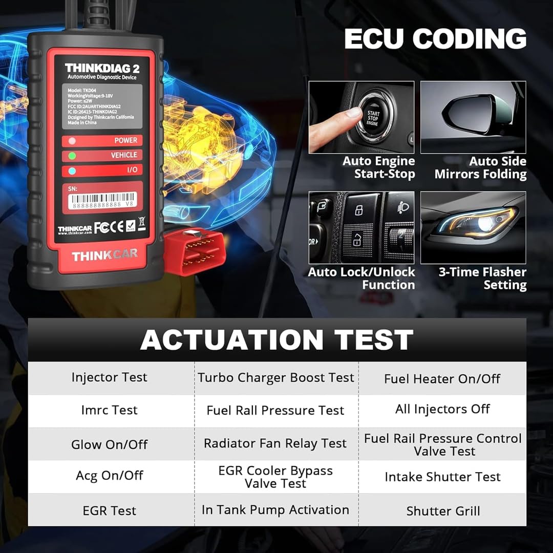 Uses the ThinkDiag 2 App to test if the actuator is standard, without using the vehicle’s controls, to get a significant boost in effectiveness: [ Turn on the radiator fan | Modulate the throttle | Open/close windows | Operate mirrors | Turn on/off the lights | Turn on/off the sound horn | Test door lock …
