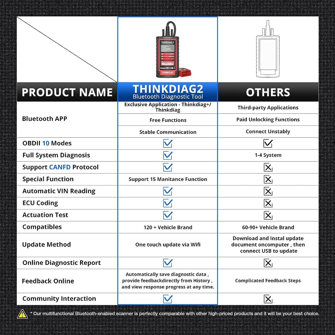 Thinkdiag2 OBD2 Diagnostic Scanner for iOS & Android, Intelligent Scan Tool with CAN-FD Protocol, 15+ Reset Functions, ECU Coding with 1 Year Update c
