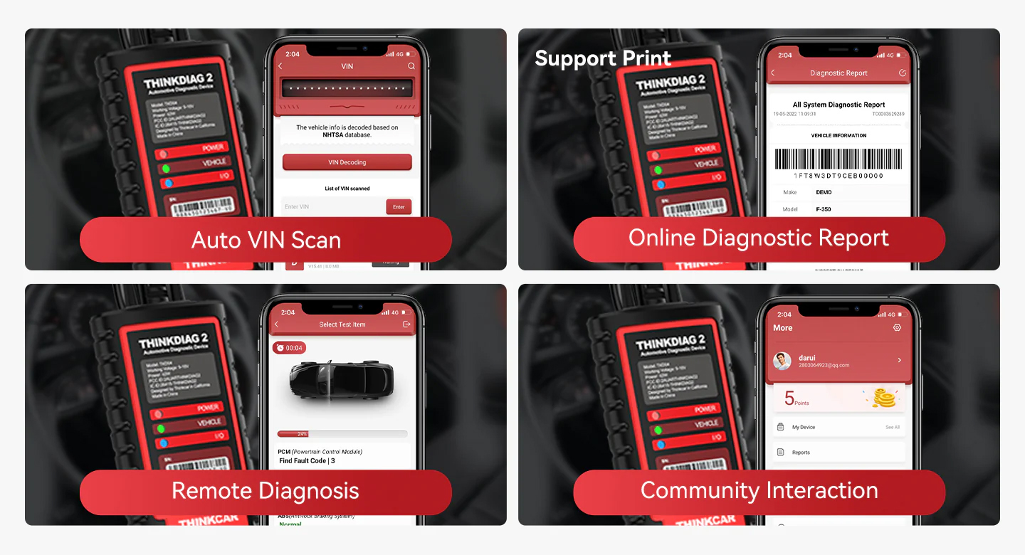 ThinkDiag 2 Enhanced diagnostic scanner can perform OE-level diagnostics on all systems, such as ABS, SRS, Engine, Transmission, Wiper, Seat, EPB, TPMS, Body System, AWD, Door Lock System, Battery, ESP, Parking Sensor, Cruise Control, Instrument, etc.